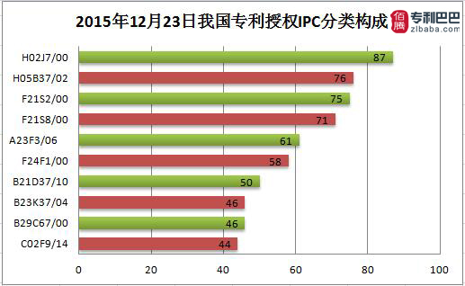 由專利巴巴數據監控中心統計,2015年12月23日中國專利授權數據共34132件。