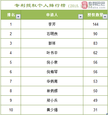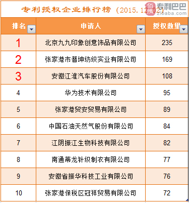 2015年12月2日中國專利授權(quán)數(shù)據(jù)共48219件。